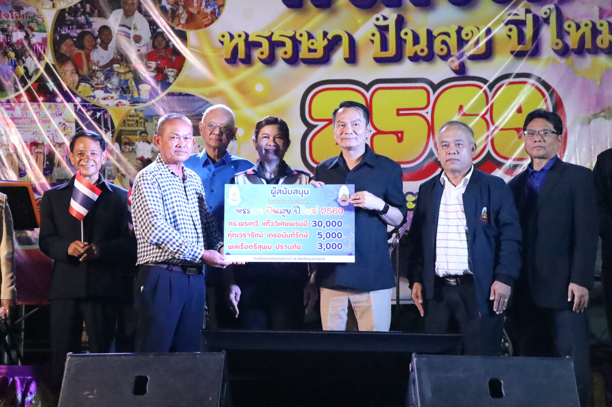 วันที่ 15 มกราคม พ.ศ. 2569 เวลา 17.30 น. นายสัญญา แสนทวีสุข ผู้อำนวยการโรงเรียน พร้อมด้วยคณะผู้บริหาร คณะบุคลากรครูและนักเรียน จัดกิจกรรม หรรษา ปันสุข ปีใหม่ 2569 โดยการร่วมสมทบทุน สนับสนุนเป็นเจ้าภาพจัดเลี้ยงหมูกระทะและของรางวัลในกับนักเรียน จากผู้ท่านผู้ใหญ่ใจดีจากหลายภาคส่วน ทั้งนี้โดยมี นายณรงค์ เทพเสนา ผู้ว่าราชการจังหวัดอุบลราชธานี เป็นประธานในพิธีเปิดกิจกรรมในครั้งนี้ ณ โดมเอนกประสงค์ โรงเรียนราชประชานุเคราะห์ 32 จังหวัดอุบลราชธานี พร้อมทั้ง 1.นางฐิติวรดา เทพเสนา นายกเหล่ากาชาดจังหวัดอุบลราชธานี 2.นางจารุวรรณ บุญโต ผู้อำนวยการ สพม.อุบลราชธานี อำนาจเจริญ 3.นายธีระชัย จึงวิวัฒนาภรณ์ ประธานคณะกรรมสถานศึกษาโรงเรียนราชประชานุเคราะห์ 32 และผู้ที่มีส่วนร่วมทุกท่านร่วมกิจกรรม ในครั้งนี้ด้วย “ในนามของคณะผู้บริหาร คณะบุคาลกรครูและนักเรียน โรงเรียนราชประชานุเคราะห์ 32 จังหวัดอุบลราชธานี ขอขอบพระคุณท่านผู้ใหญ่ใจดี ทุกท่าน ที่ได้มาร่วมเป็นเจ้าภาพจัดเลี้ยงอาหารมื้อพิเศษนี้ ความสุขรอยยิ้มของเด็กๆนักเรียน คือความสุข ขออำนาจคุณพระศรีรัตนตรัยและสิ่งศักดิ์สิทธิ์ทั้งหลายโปรดดลบันดาลให้ท่านและครอบครัวประสบแต่ความสุข ความเจริญ สุขภาพแข็งแรง”