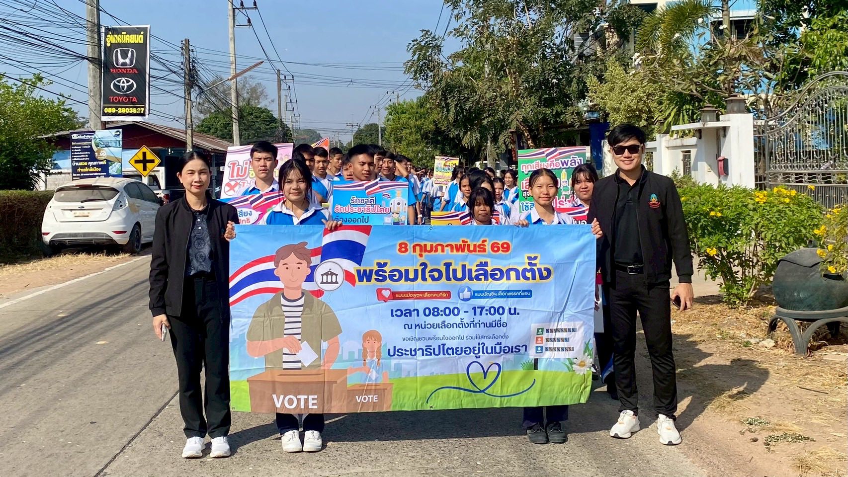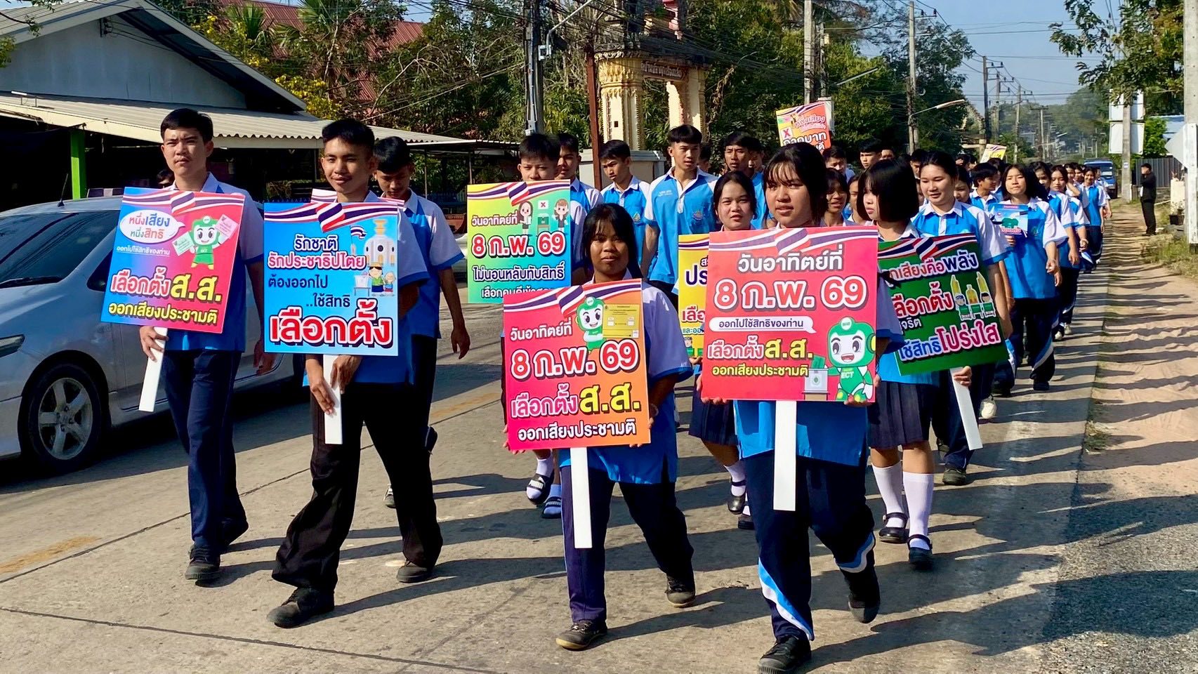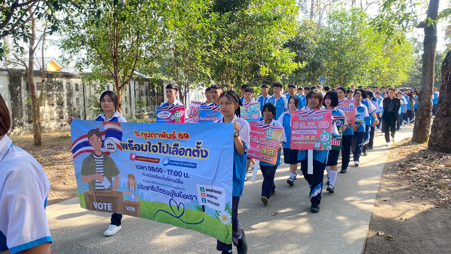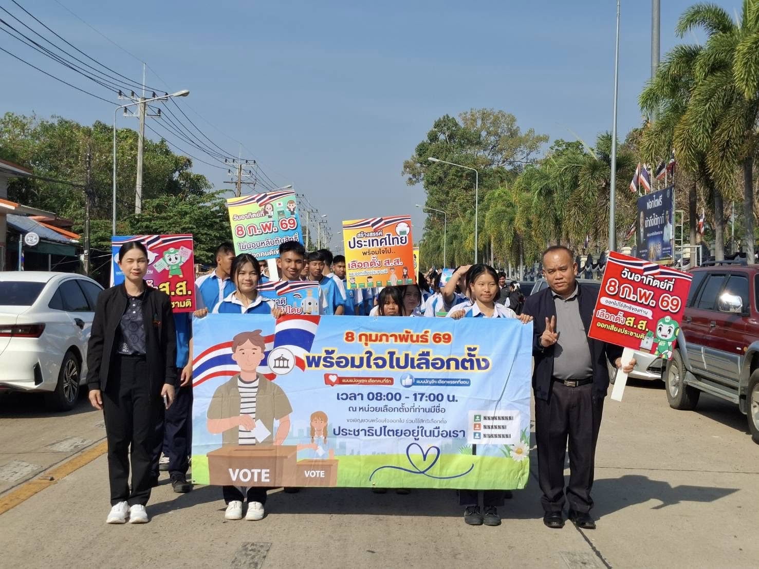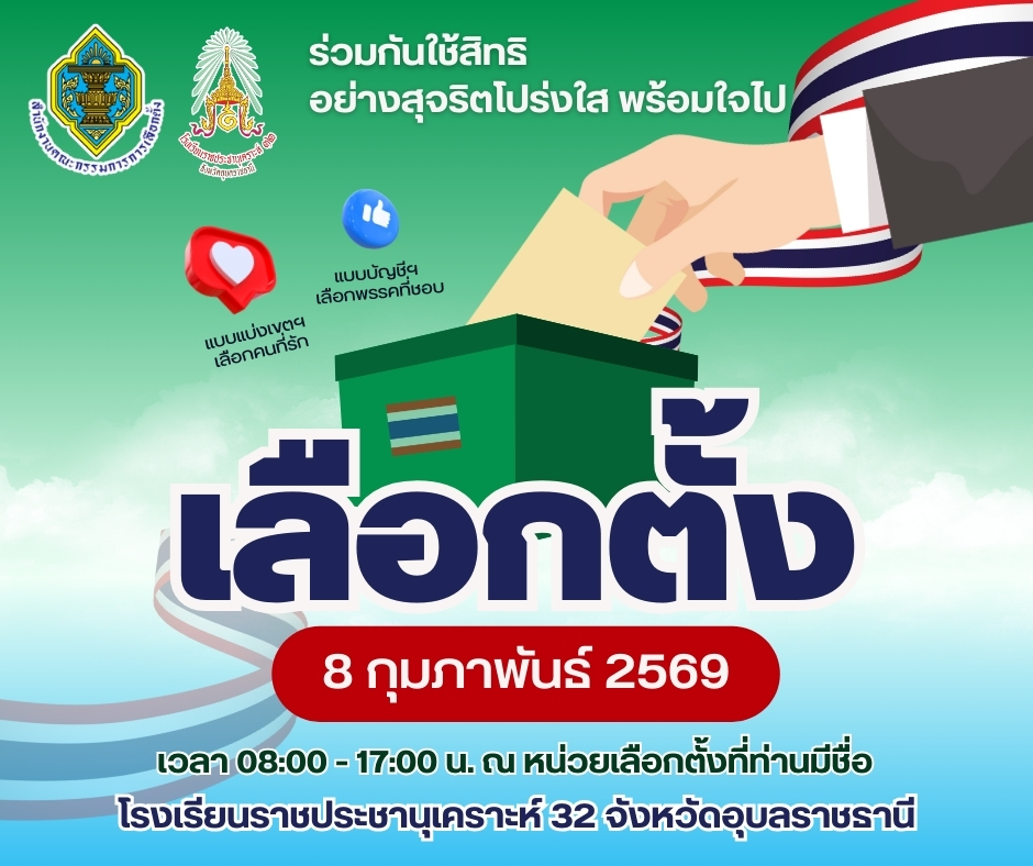 “การเลือกตั้งและลงประชามติ วันอาทิตย์ที่ 8 กุมภาพันธ์ พ.ศ. 2569 โรงเรียนราชประชานุเคราะห์ 32 จังหวัดอุบลราชธานี นำโดย นายสัญญา แสนทวีสุข ผู้อำนวยการ พร้อมด้วย คณะผู้บริหาร คณะครู และนักเรียนร่วมรณรงค์การเลือกตั้ง และออกเสียงประชามติ 2569