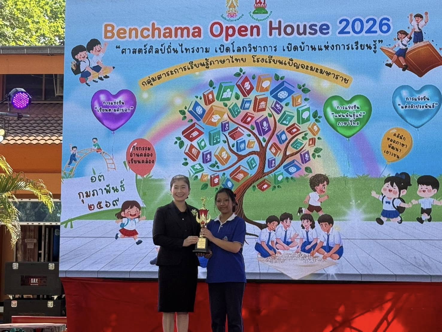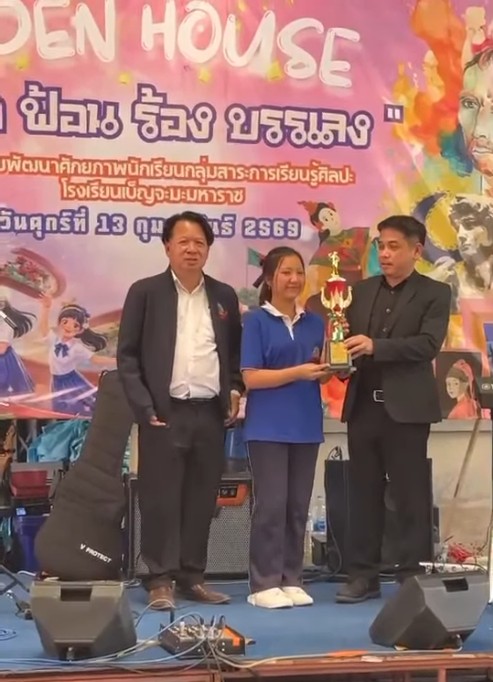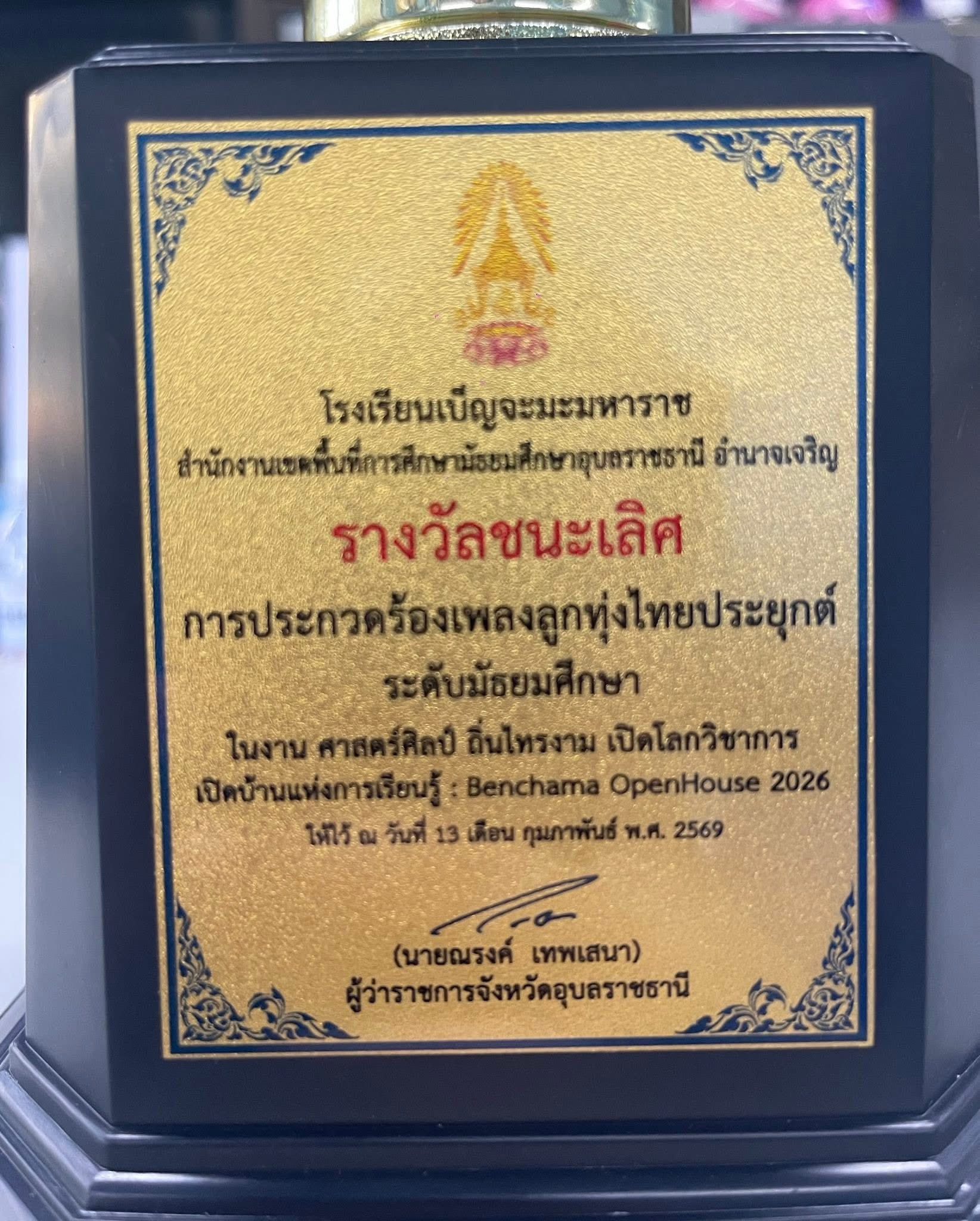 วันที่ 13 กุมภาพันธ์ 2569 กลุ่มสาระการเรียนรู้ศิลปะ ได้นำนักเรียนเข้าร่วมการแข่งขัน ประกวดร้องเพลงไทยลูกทุ่ง ระดับมัธยมศึกษา(ม.1-6) รางวัลชนะเลิศ นางสาววิมล ปราชธัมมัง