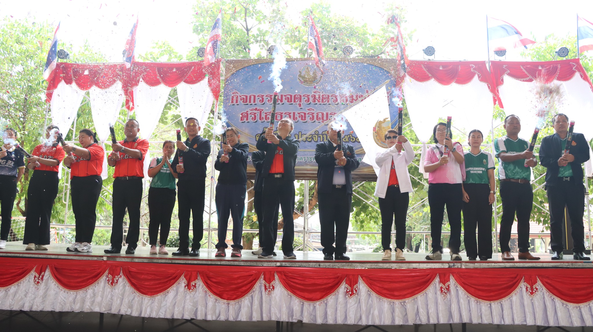 นายสัญญา แสนทวีสุข ผู้อำนวยการโรงเรียนราชประชานุเคราะห์32 จังหวัดอุบลราชธานี พร้อมด้วย นายณัฐพล นาคะยศ นายธีระวัฒน์ พิมพกรรณ นางณัฐกานต์ บาทชาลี นายจักรพัธ์ เพ็งประโคน รองผู้อำนวยการโรงเรียน ร่วมพิธีเปิดงานศิลปหัตถกรรมนักเรียน (การศึกษาพิเศษ) ครั้งที่ 73 ปีการศึกษา 2568 ภาคตะวันออกเฉียงเหนือ กลุ่มสถานศึกษา กลุ่ม 4 “กลุ่ม4 ออนซอนยโส การศึกษาพิเศษไทย หัวใจนำทาง” ณ โรงเรียนราชประชานุเคราะห์ 28จังหวัดยโสธร