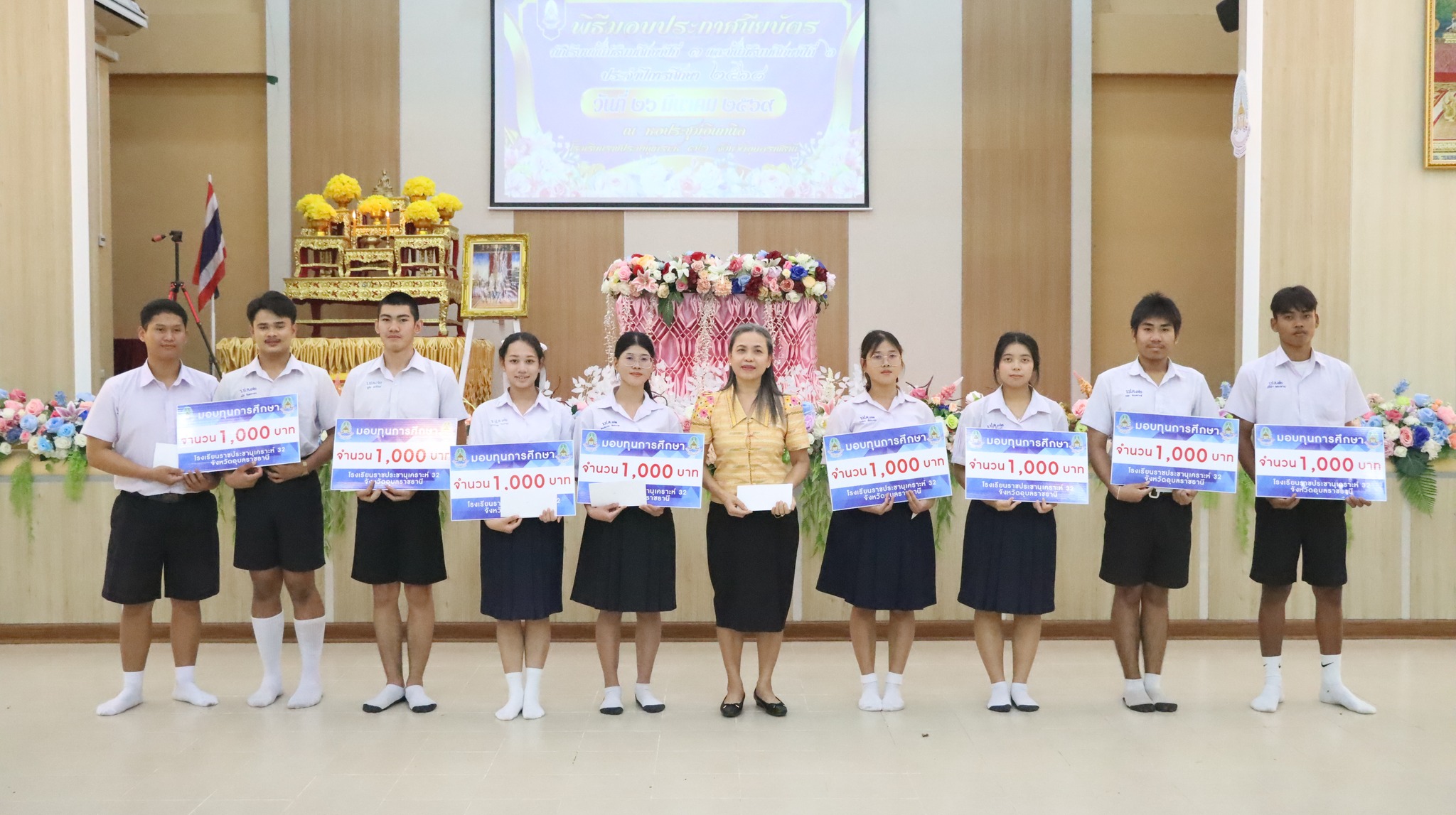วันที่ 26 มีนาคม พ.ศ. 2569 เวลา 11.00 น. นายสัญญา แสนทวีสุข ผู้อำนวยการโรงเรียน พร้อมด้วยคณะผู้บริหาร ข้าราชการครูและบุคลากรทางการศึกษา จัดพิธีทำบุญตักบาตร เนื่องในวันคล้ายวันสถาปนา ครบรอบ 27 ปี โรงเรียนราชประชานุเคราะห์ 32 จังหวัดอุบลราชธานี ในวันที่ 26 มีนาคม ของทุกปี จัดพิธีมอบประกาศนียบัตร นักเรียนที่สำเร็จการศึกษา ชั้นมัธยมศึกษาปีที่ 3 และชั้นมัธยมศึกษาปีที่ 6 ประจำปีการศึกษา 2568 พิธีมอบทุนการศึกษาให้กับนักเรียน และ จัดกิจกรรม “รดน้ำขอพร สิบสานประเพณีไทย” เนื่องวันสงกรานต์ ประจำปี พ.ศ.2569 เพื่อแสดงความกตัญญูกตเวทีความเคารพรักต่อญาติผู้ใหญ่ และผู้มีพระคุณ พร้อมรับคำอวยพรเพื่อความเป็นสิริมงคลเริ่มต้นปีใหม่ไทย โดยมี ดร.ไขนภา สุทธิอาคาร รองประธานคณะกรรมการสถานศึกษา เป็นประธานในพิธีครั้งนี้ ณ โดมเอนกประสงค์ โรงเรียนราชประชานุเคราะห์ 32 จังหวัดอุบลราชธานี
